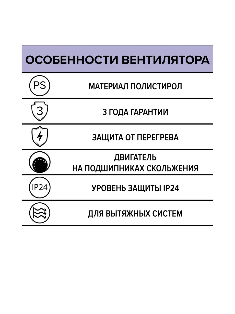 Двигатель на подшипниках скольжения отличается простотой конструкции и гарантирует вытяжку влажного и загрязненного воздуха. Предохранитель Termo fuse отключит вентилятор при нагреве обмотки свыше +130 °C.