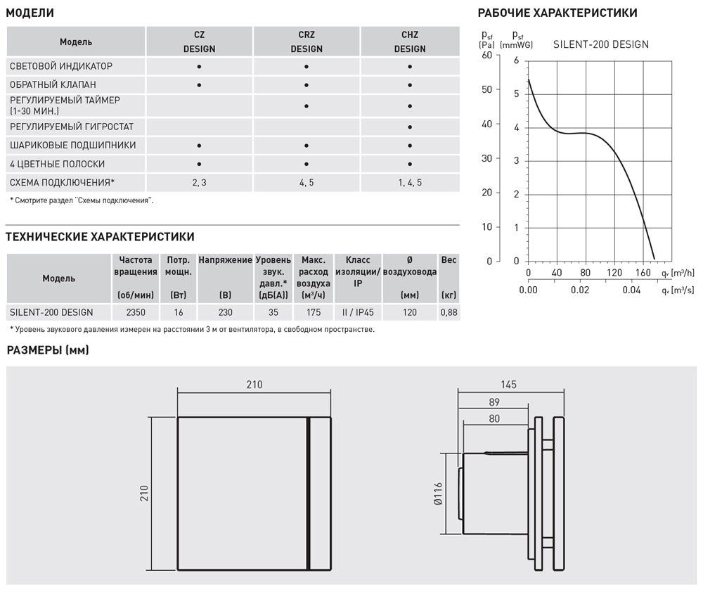- Вентиляторы SILENT DESIGN изготавливаются из высококачественного и экологичного АБС – пластика, комплектуются обратным клапаном и электродвигателем постоянного тока (230-50 Гц), класс изоляции В, со встроенной термозащитой.